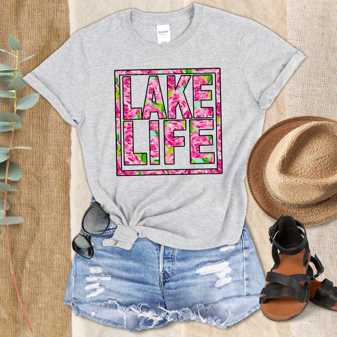 “Lake Life” floral print graphic tee – perfect for sunny days and lakeside vibes.